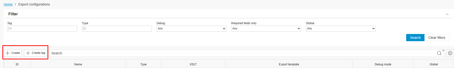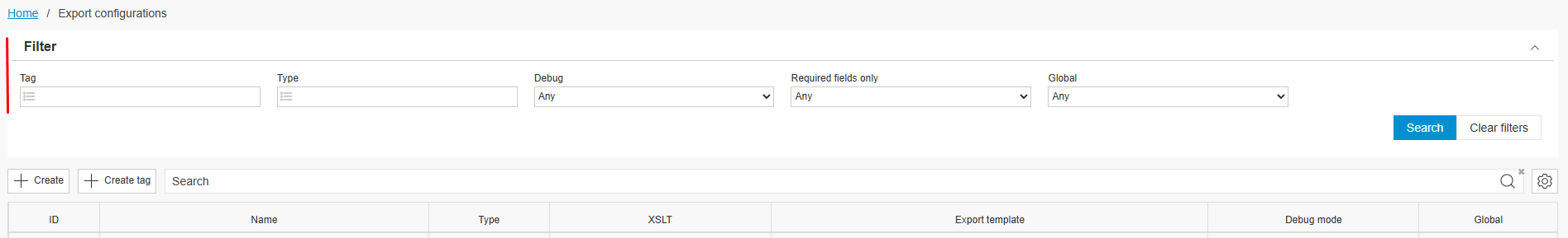 On the platform, you will find the following key sections: Import configurations/Export configurations