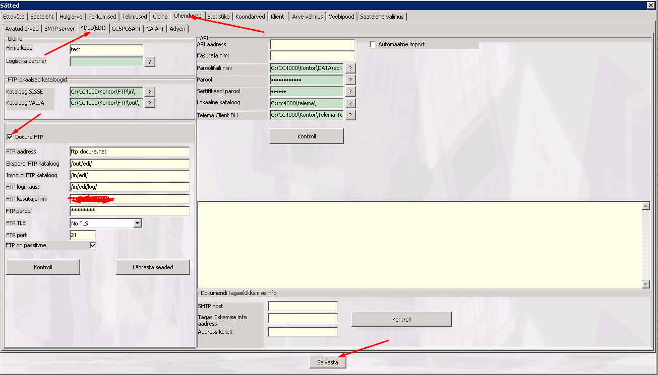 - FTP Reeglid : veenduge, et FTP reeglid vastavad Telema 4DOC API seadistustele.