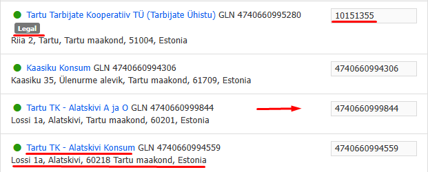 Kliendid saavad eksportida kõik tarnekohad või valikuliselt mõned neist CSV või Exceli formaadis, kus on sees ka tarnekohate ID-d.