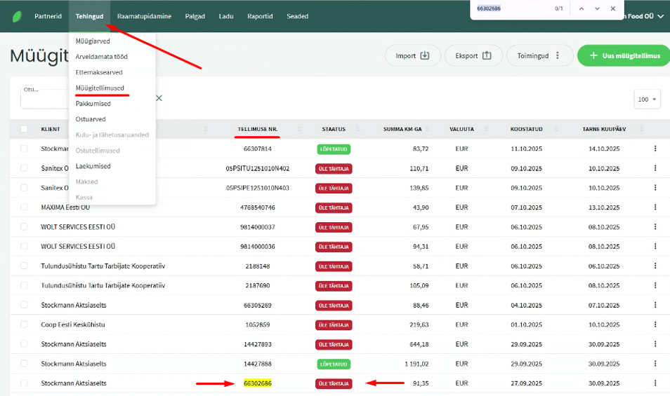 - Lähevad korrektsed tellimused kohe rubriigi "Müük" alla.